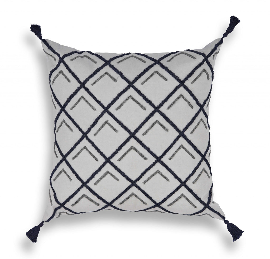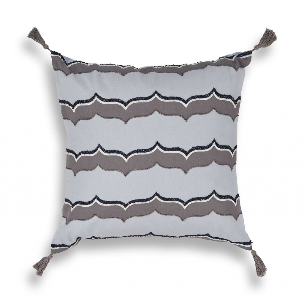 Exotic Square Taupe and Blue Tassel Accent Pillow