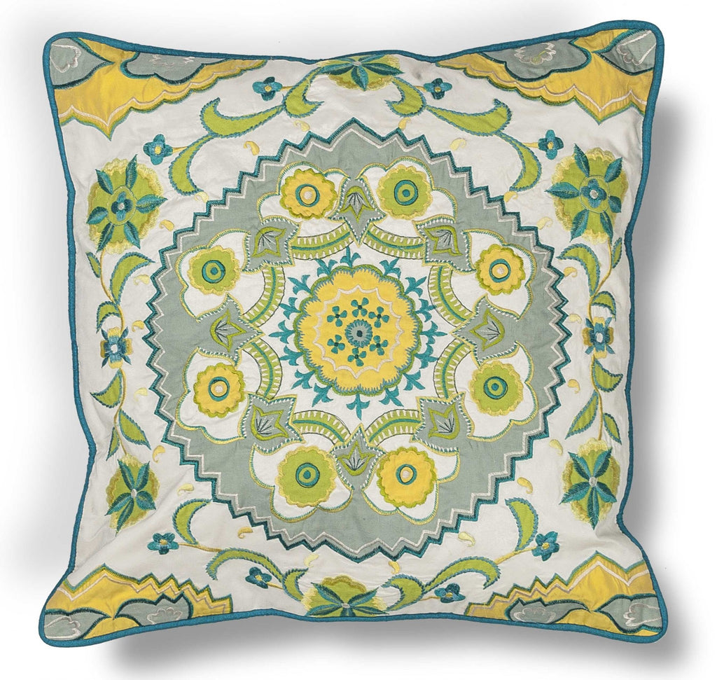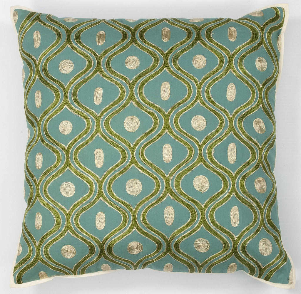 Square Beaded Ivory and Blue Beaded Starfish Accent Pillow