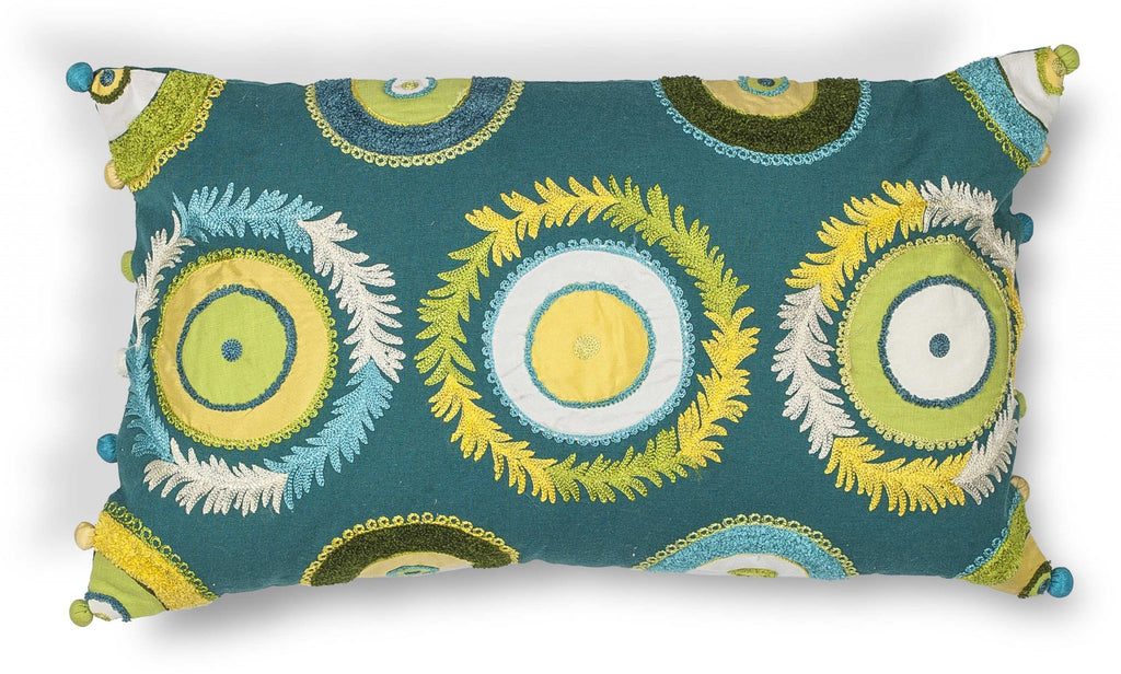Vibrant Blue Green Circles Lumbar Accent Pillow