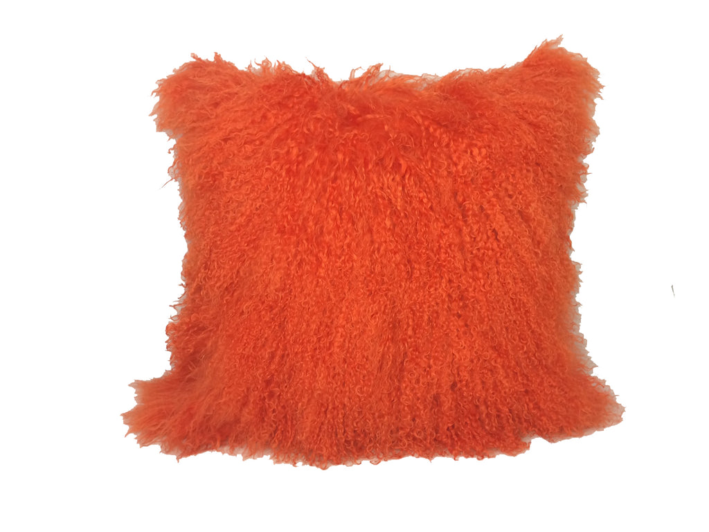 24" Orange Genuine Tibetan Lamb Fur Pillow with Microsuede Backing