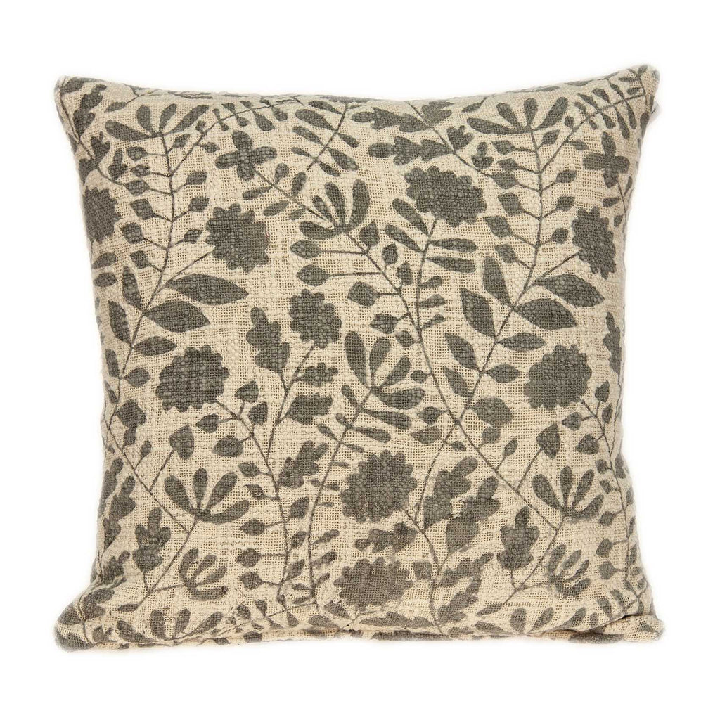 18" x 7" x 18" Transitional Beige Floral Print Pillow Cover With Poly Insert