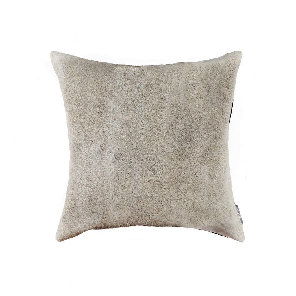 5" x 18" x 18" Cowhide, Microsuede, Polyfill Natural & Light Grey Pillow