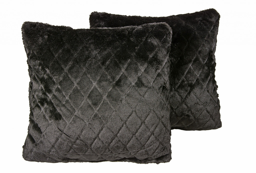 18" x 18" x 5" - Black, Faux Fur - Pillow 2-Pack