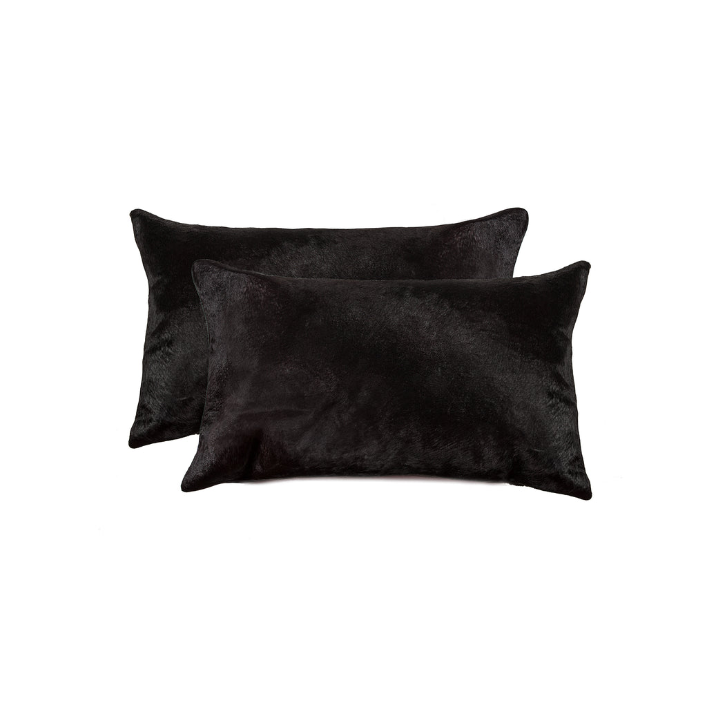 12" x 20" x 5" Black, Cowhide - Pillow 2-Pack