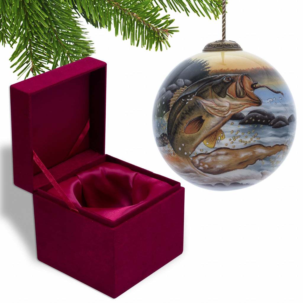 Bass Fish on a Lure Hand Painted Mouth Blown Glass Ornament