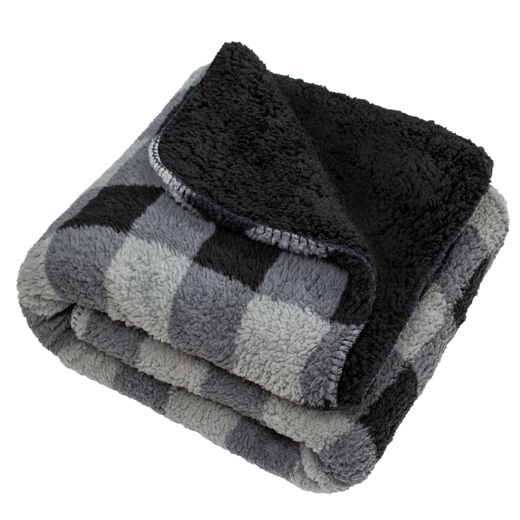 Black Grey and Black Printed Sherpa and Sherpa Throw Blanket