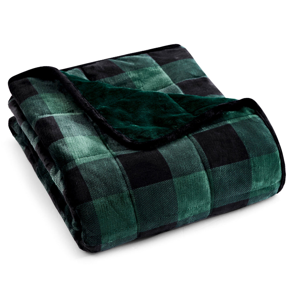 Green Plaid Weighted Velvet and Velvet Throw Blanket