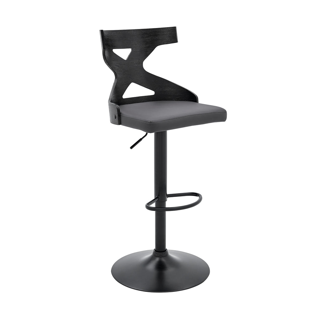 Grey Faux Leather Adjustable Black Swivel Bar Stool