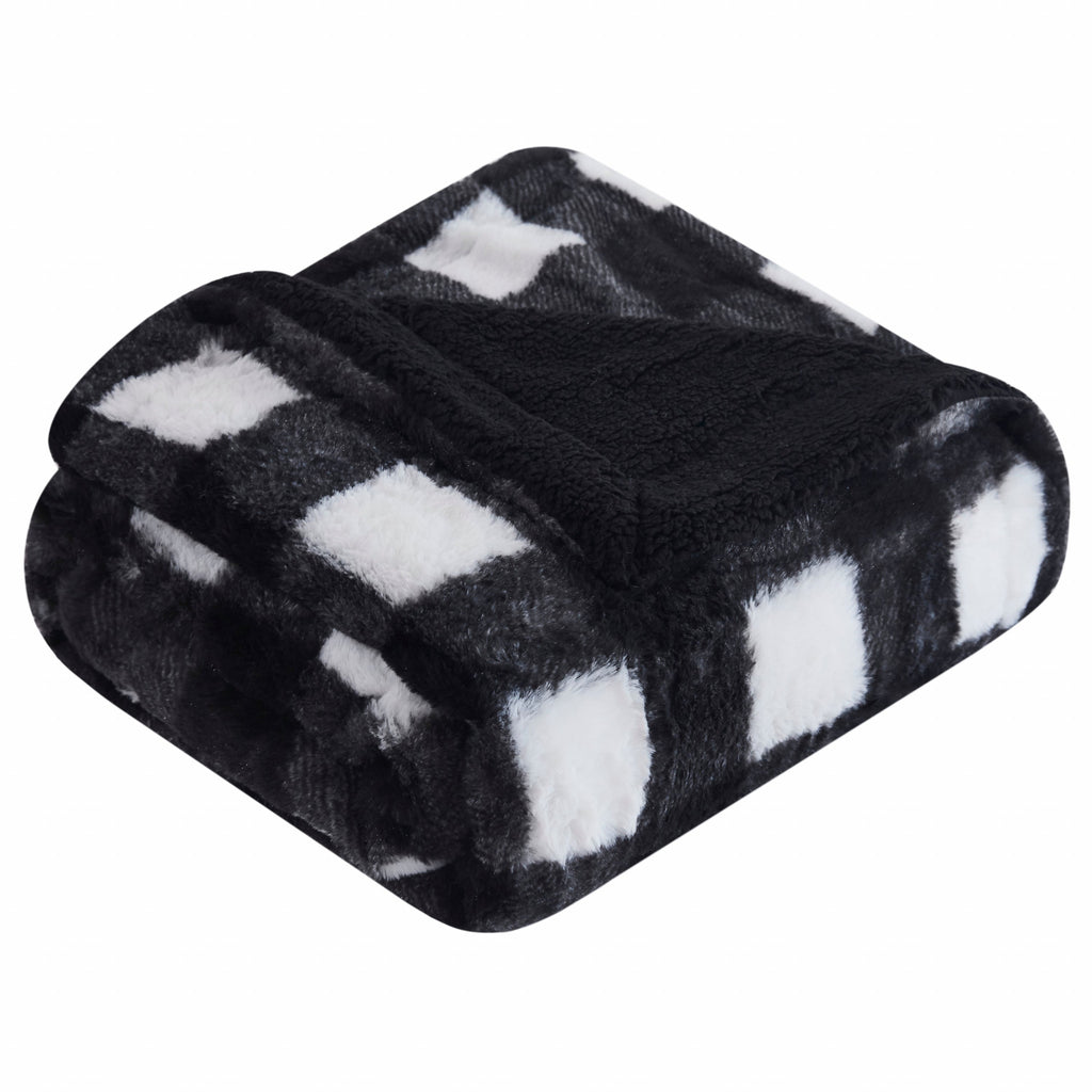 Reversible Buffalo Black and White Faux Rabbit Fur and Sherpa Throw Blanket