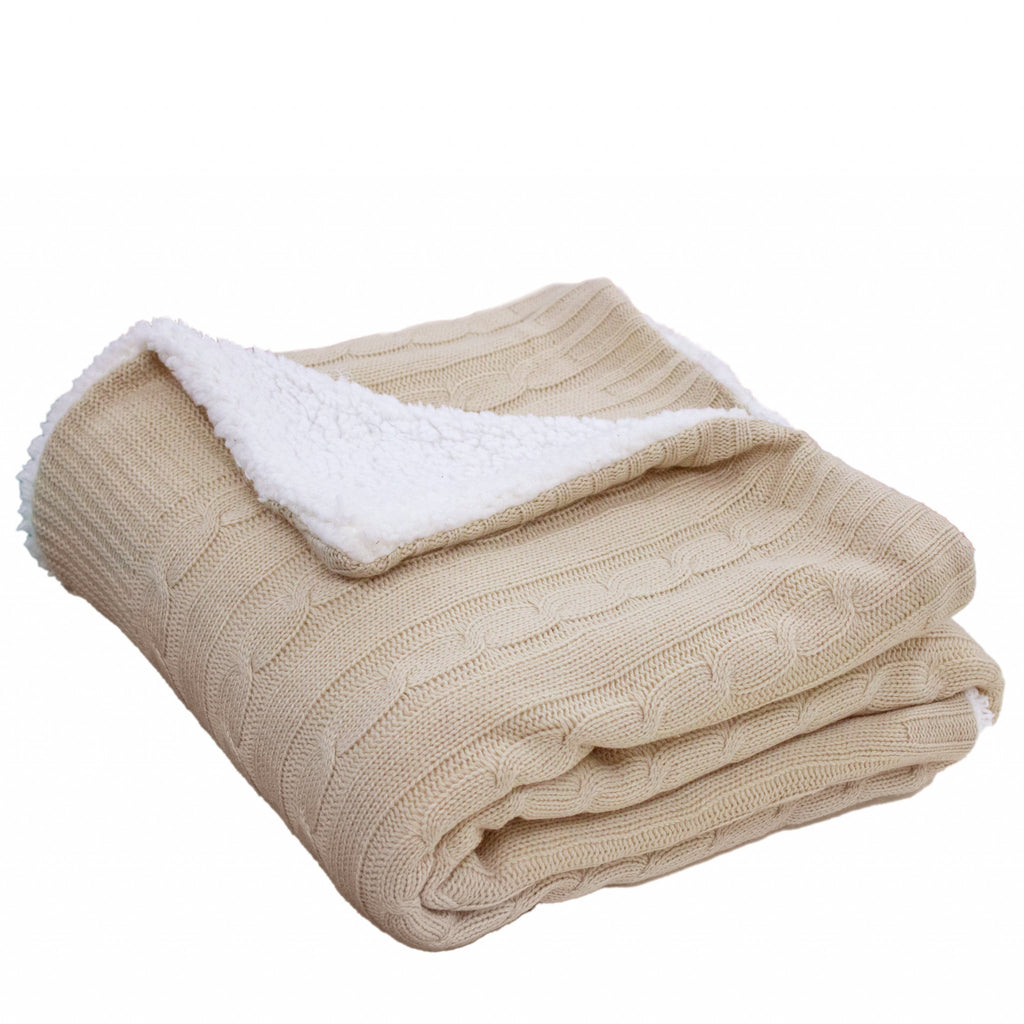 Reversible French Oak Cable Knit and Sherpa Throw Blanket