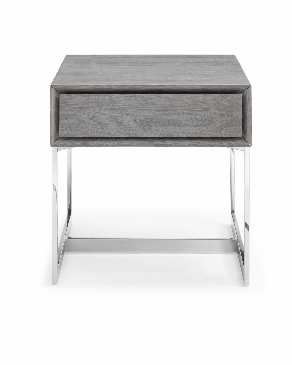 Side Table Gray Oak Veneer One Drawer Polished Stainless Steel Legs