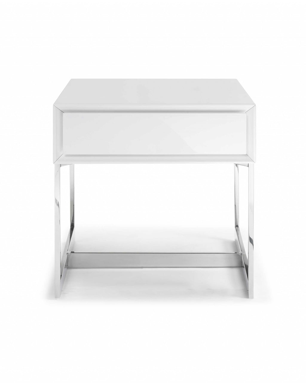 Side Table High Gloss White One Drawer Polished Stainless Steel Legs