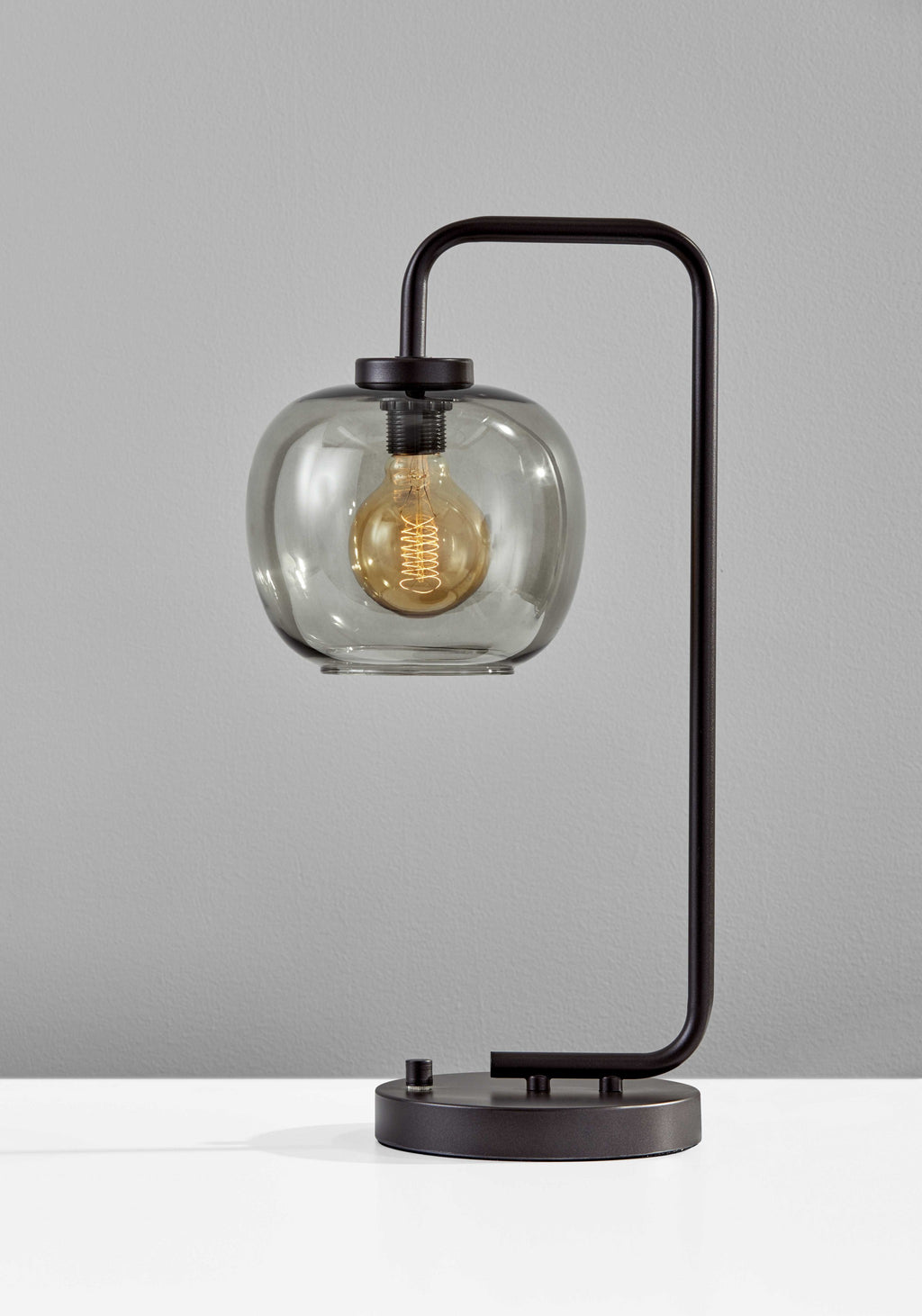 Smoked Glass Globe Shade with Vintage Edison Bulb and Matte Black Metal Arc Table Lamp