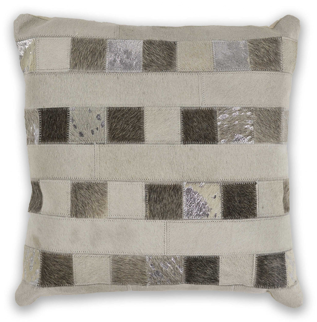 Square Ivory and Metallic Leather Patchwork Accent Pillow