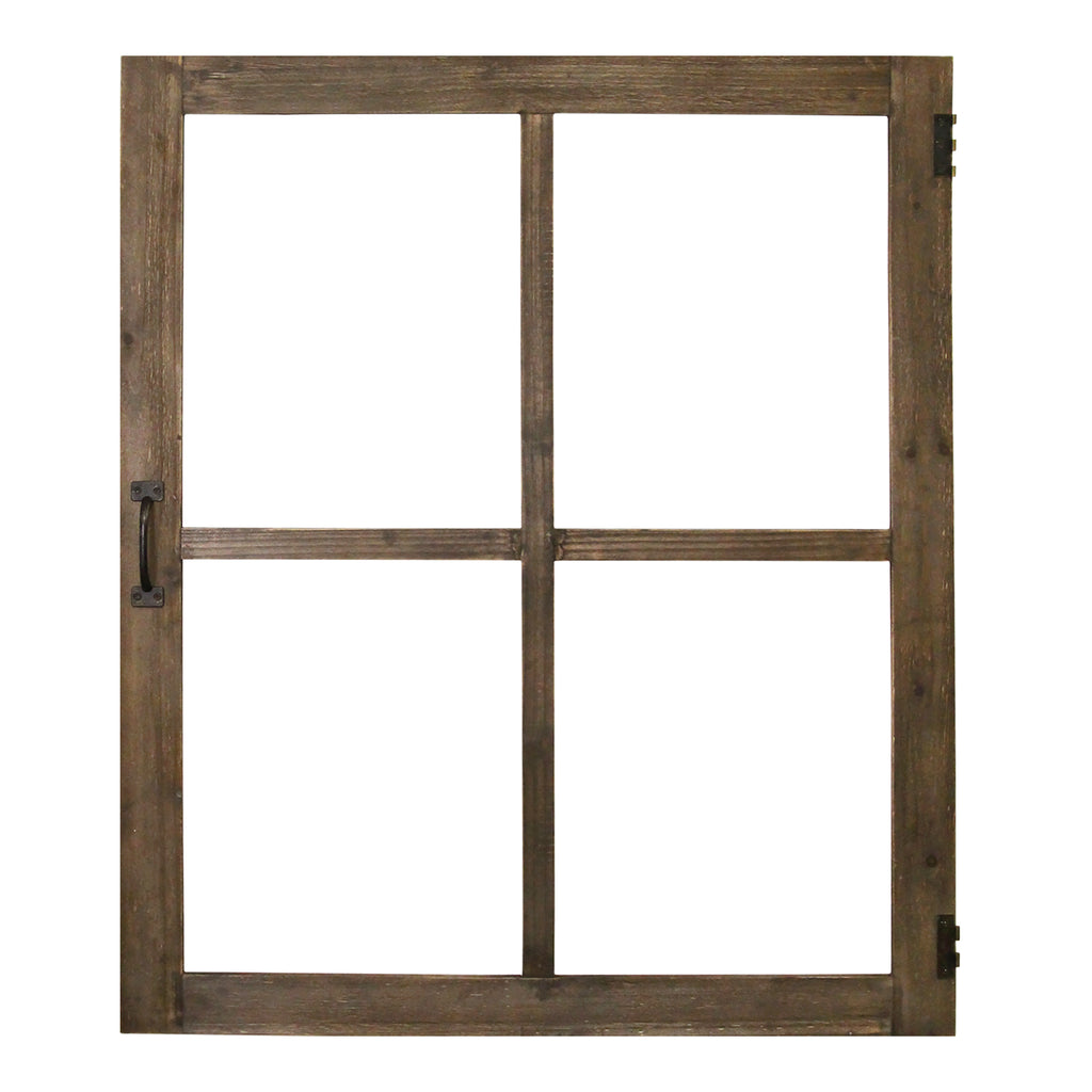 Walnut Wood Windowpane Wall Decor with Metal Hinges