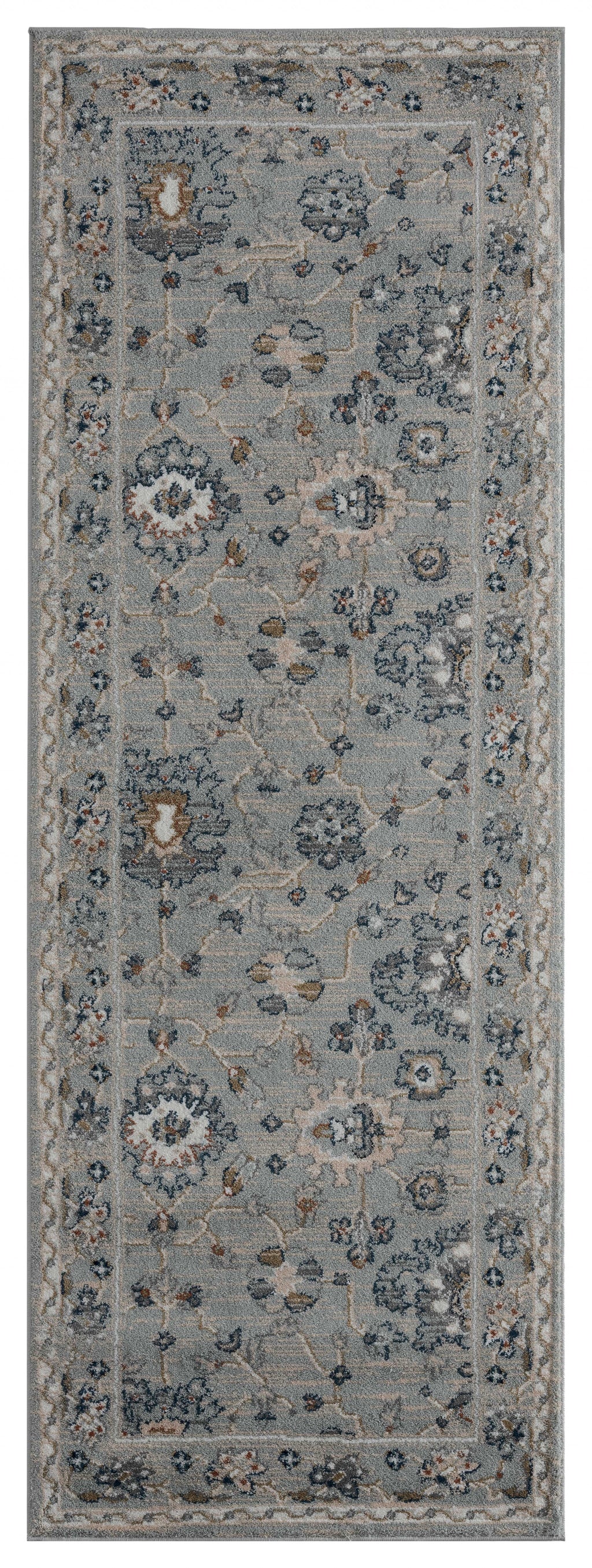 31" x 86" Blue / Grey Microfiber / Polyester Runner Rug