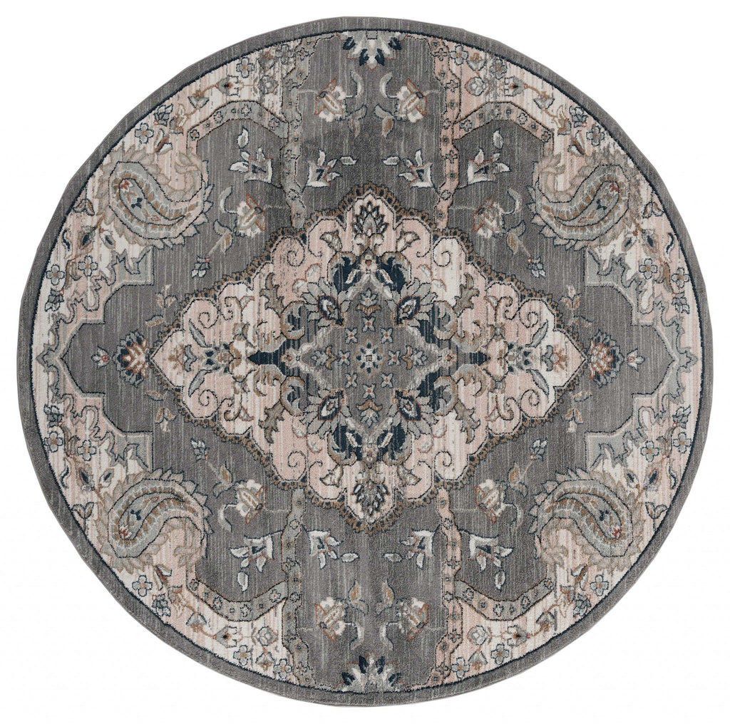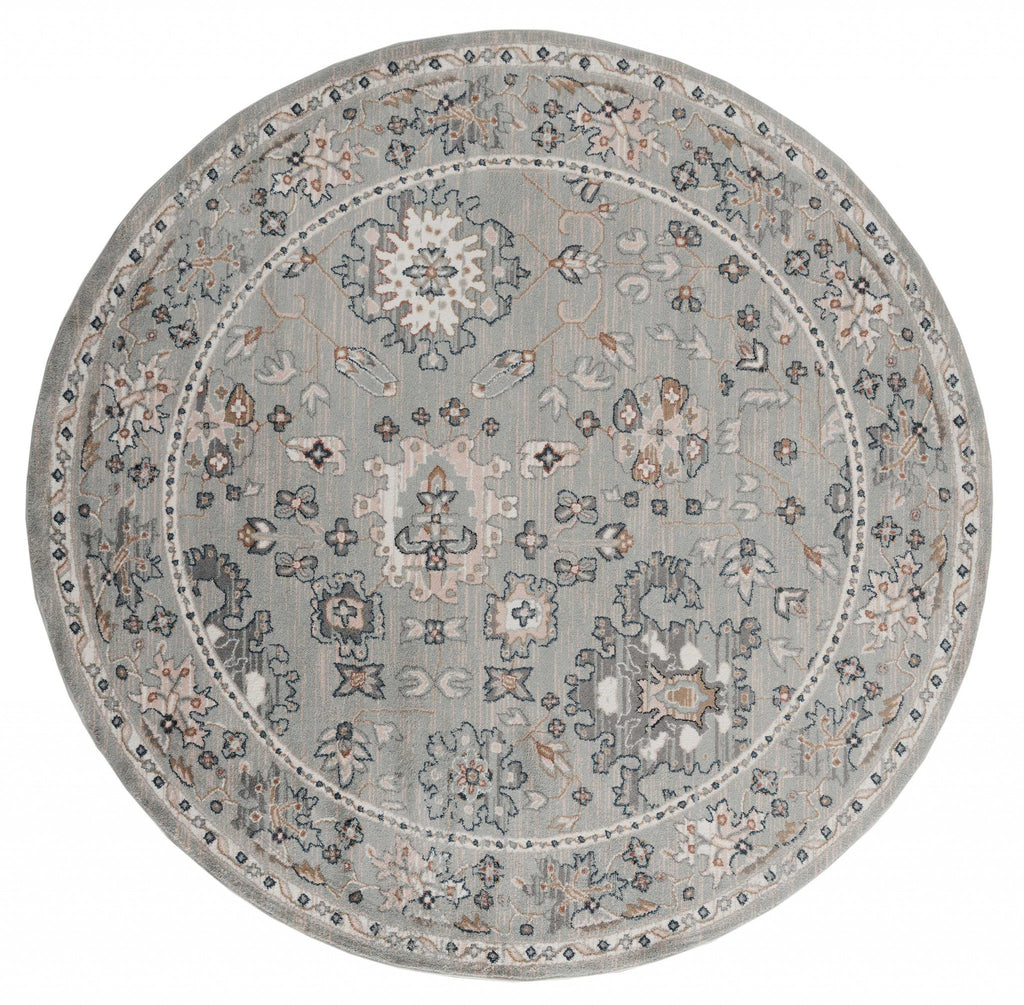 94" x 94" Blue / Grey Microfiber / Polyester Round Rug