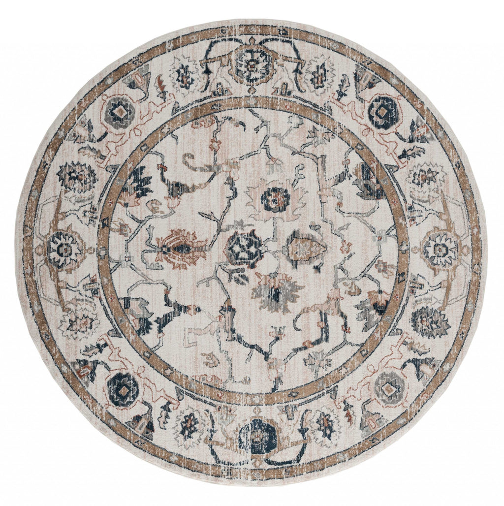 94" x 94" Beige Microfiber / Polyester Round Rug