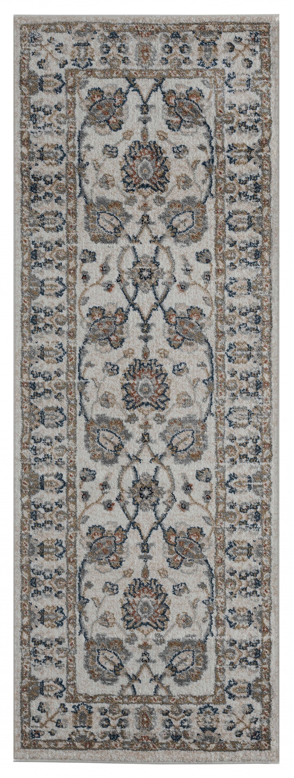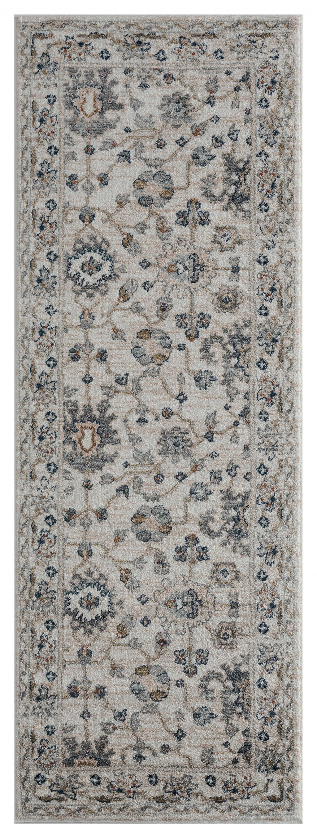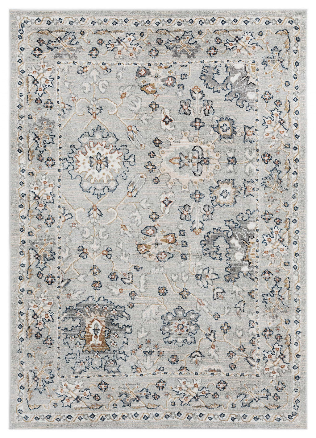 2' x 3' Ornate Design Neutral Tone Gray Blue Accent Area Rug