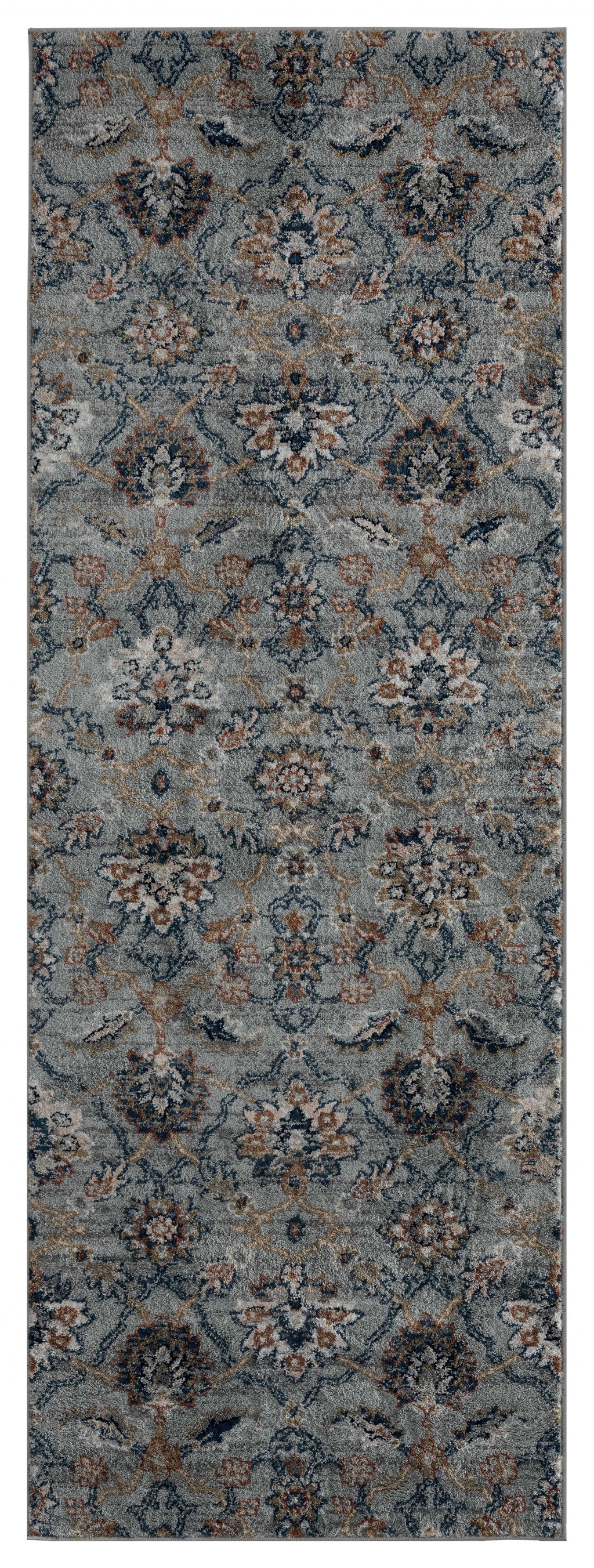 31" x 86" Blue / Grey Microfiber / Polyester Runner Rug