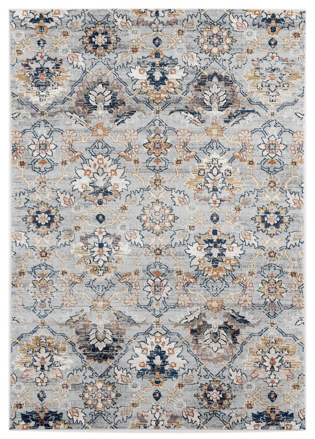 63" x 86" Blue / Grey Microfiber / Polyester Area Rug