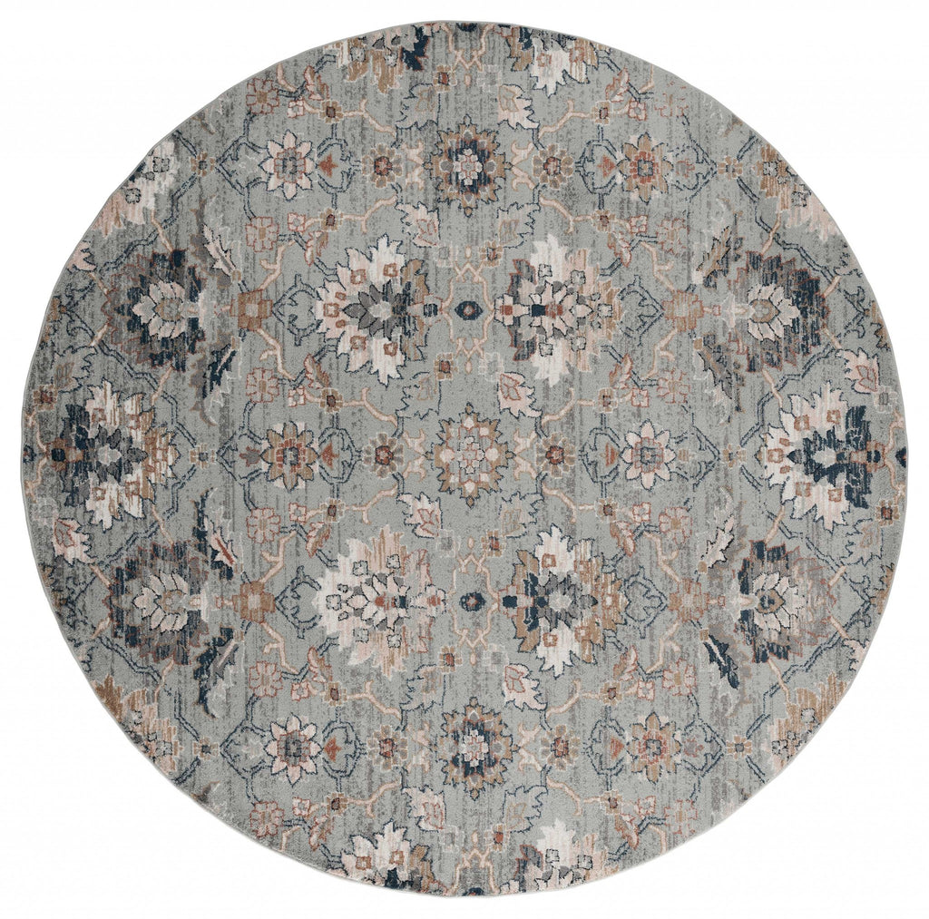 94" x 94" Blue / Grey Microfiber / Polyester Round Rug