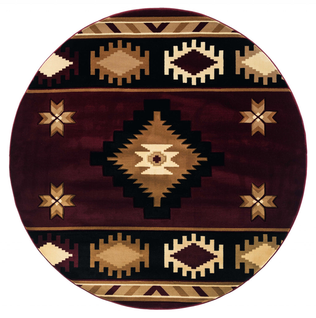 94" x 94" Burgundy Olefin / Polypropylene Round Rug