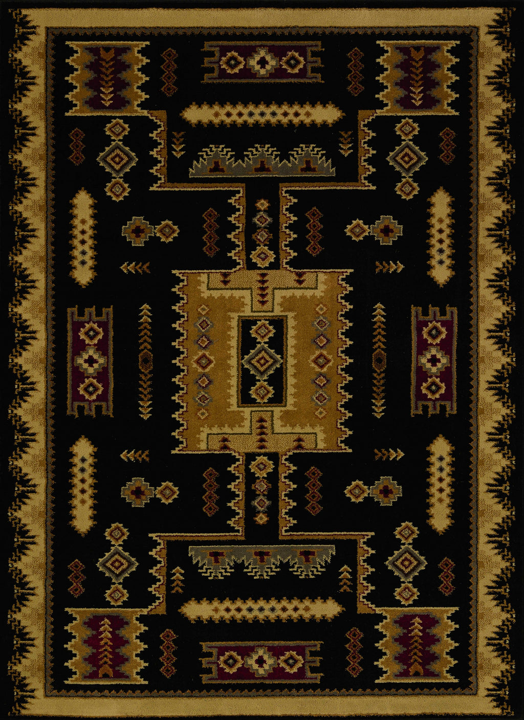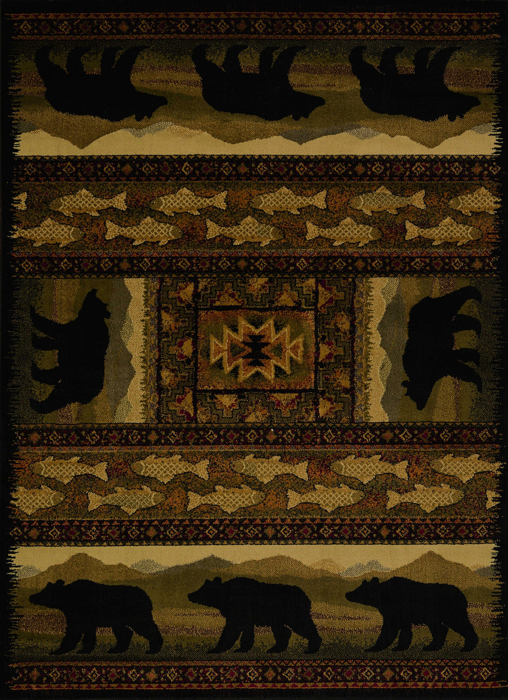 63" x 86" Black Polypropylene Bears Lodge Area Rug