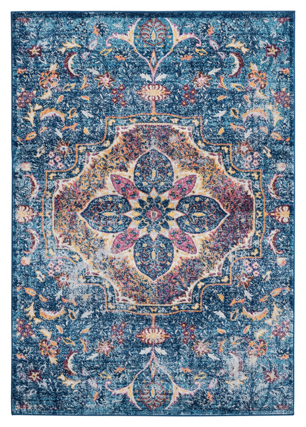 63" x 86" Blue Olefin / Frieze Area Rug