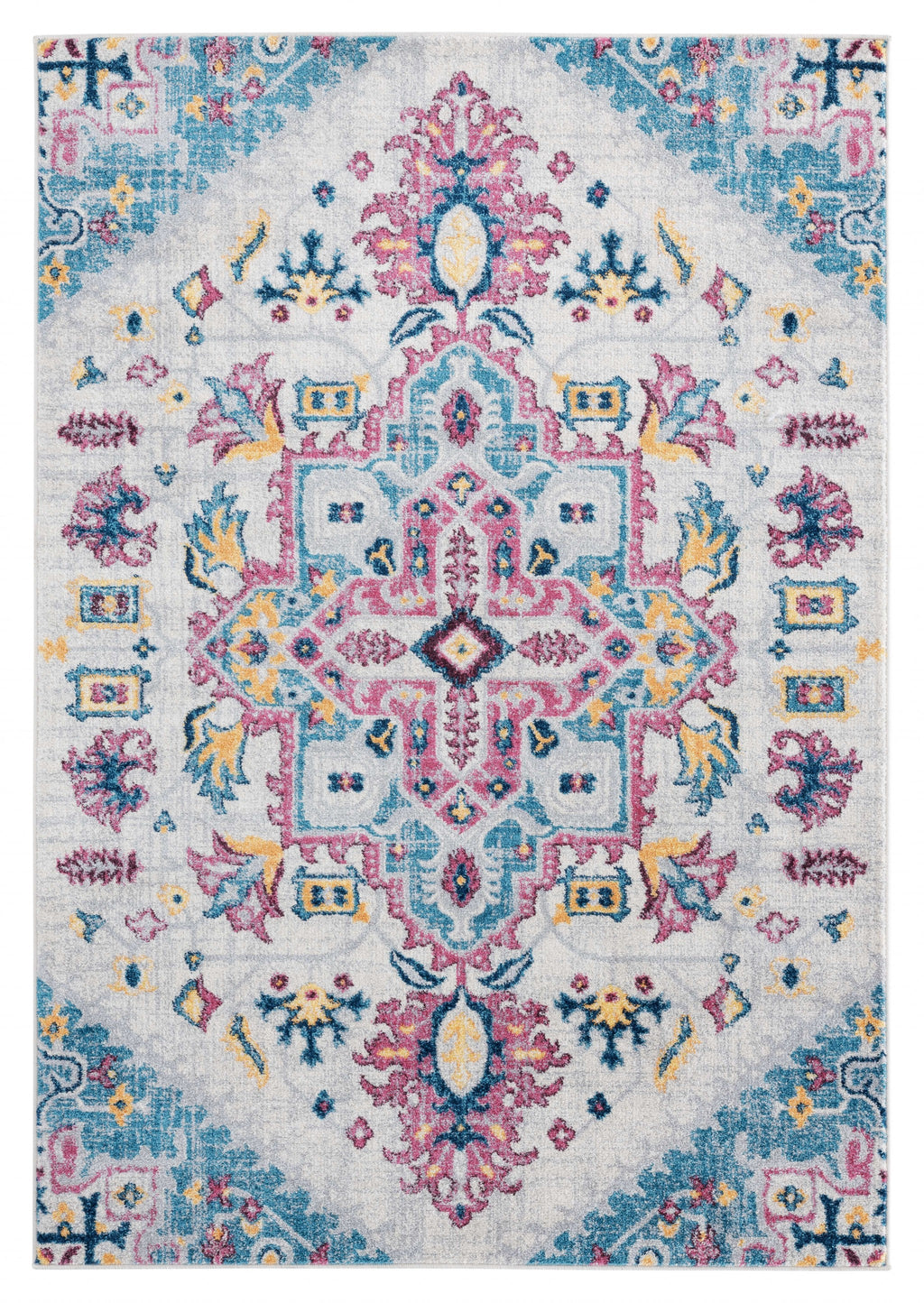 63" x 86" Cream Olefin / Frieze Area Rug