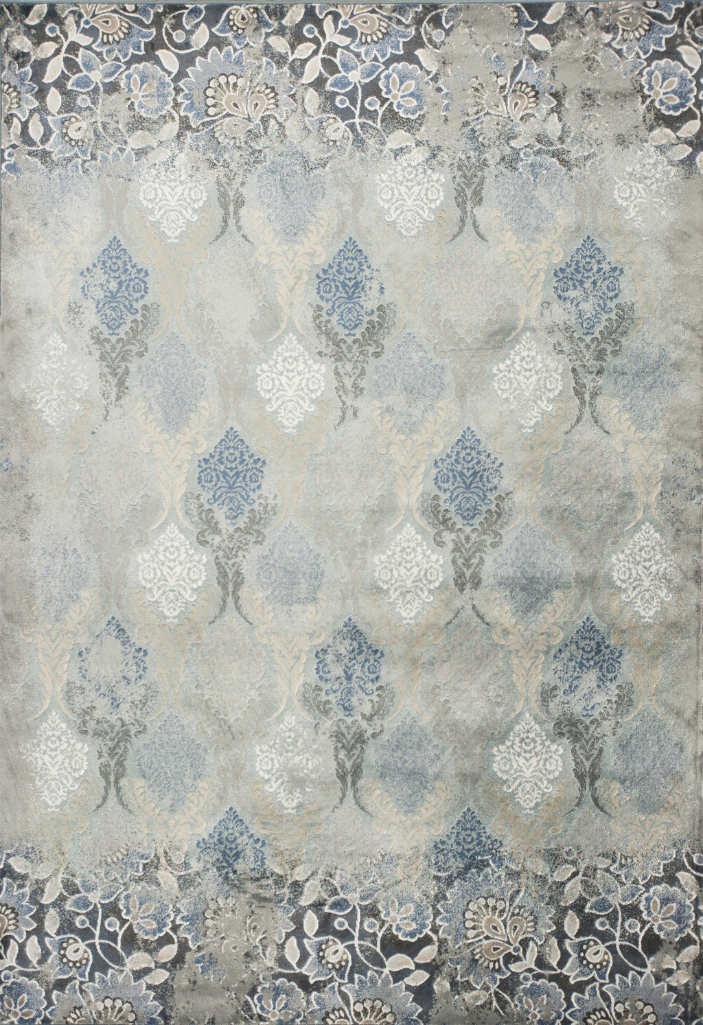 3' x 4' Gray Blue Paisley Faux Silk Area Rug