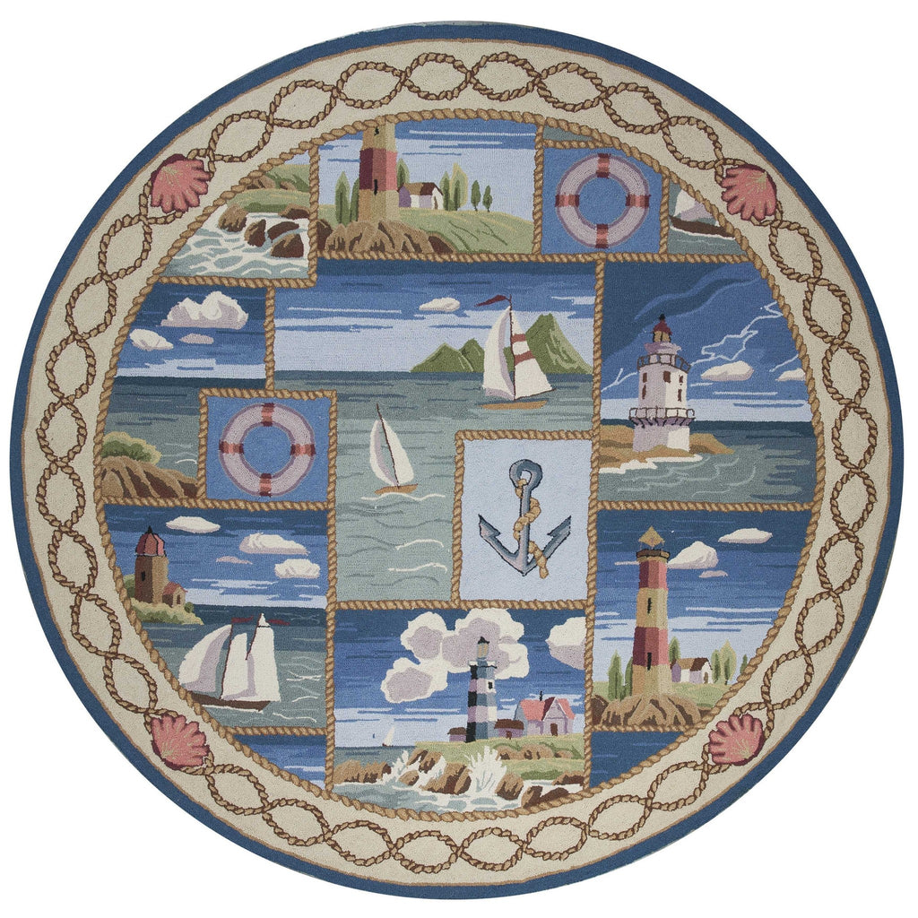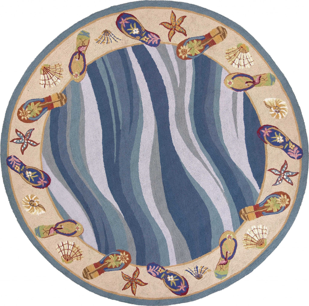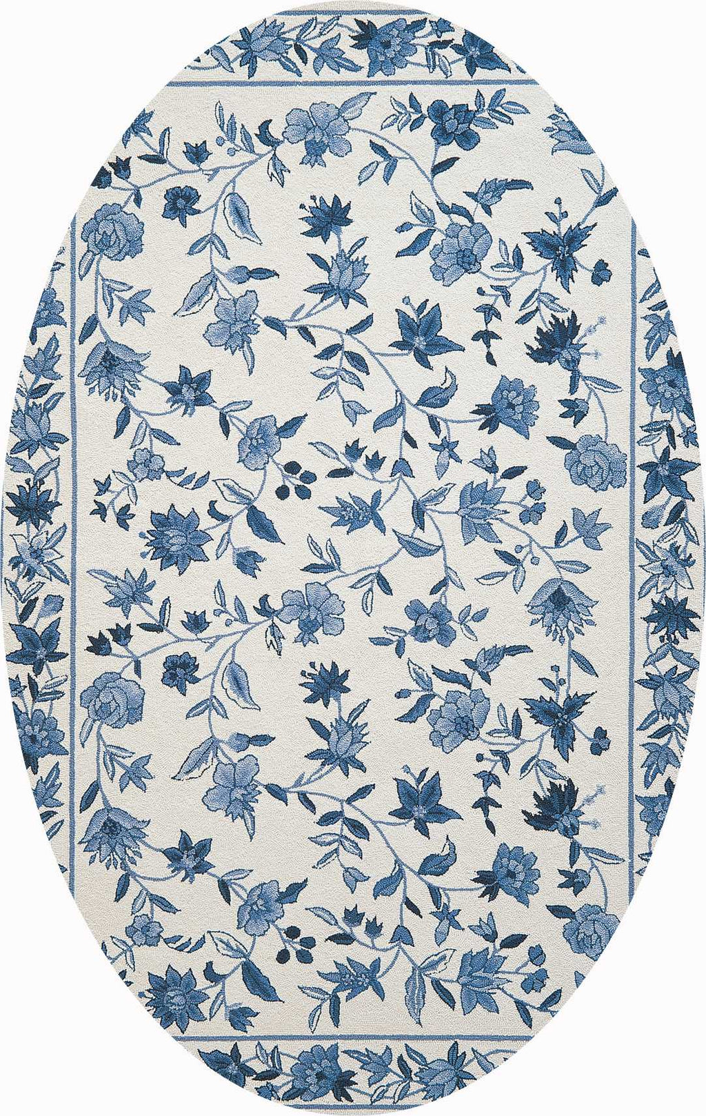 2' x 4' Oval Wool Blue or Ivory Area Rug