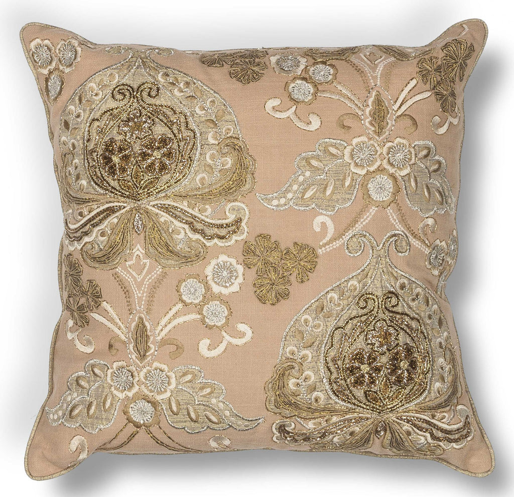 Elegant Square Blush Gold Embroidered Accent Pillow