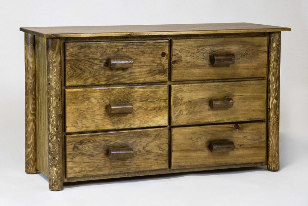 Natural Dark Brown Finish Wood Six Drawer Dresser