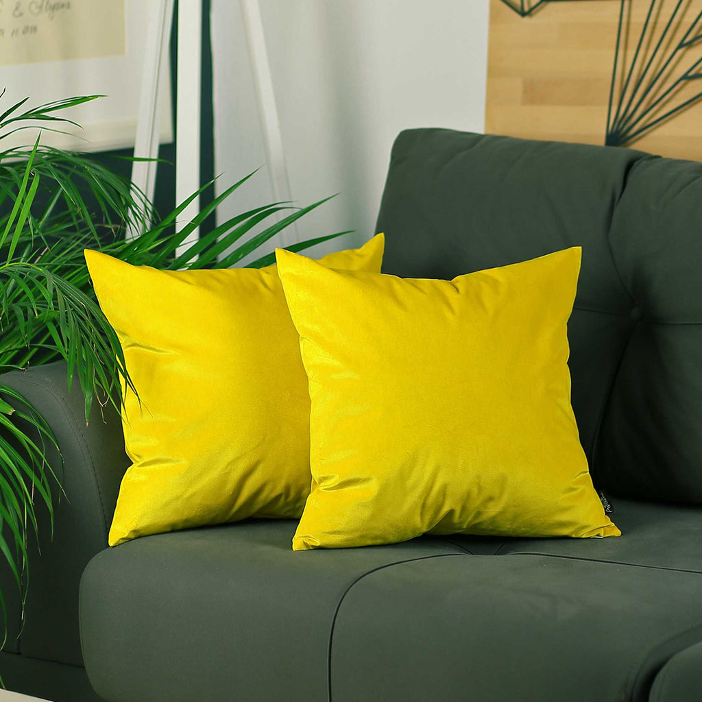 18"x 18" Yellow Velvet Decorative Throw Pillow Cover (2 Pcs in set)