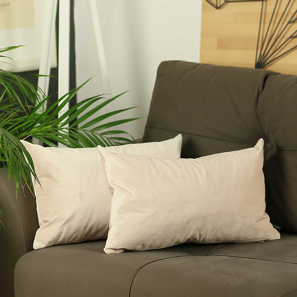 21"x14" Light Beige Velvet Decorative Throw Pillow Cover (2 Pcs in set)