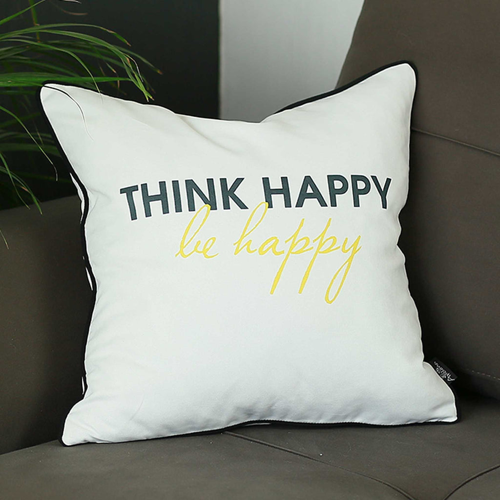 18"x18" Scandi Think Happy Printed Decorative Throw Pillow Cover