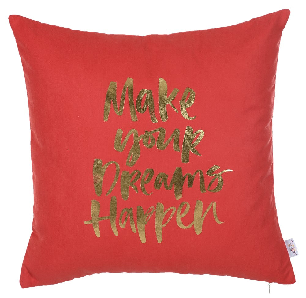 18"x 18" Red Happy Square Quote Printed Decorative Throw Pillow Cover Pillowcase