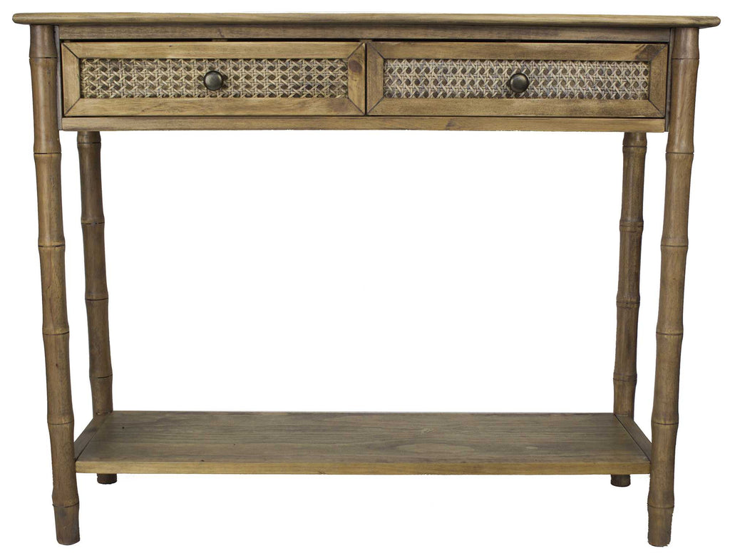 31.5" X 16" X 40" Rustic Wood Wood Pine Cane Cabinet with Drawers and a Shelf