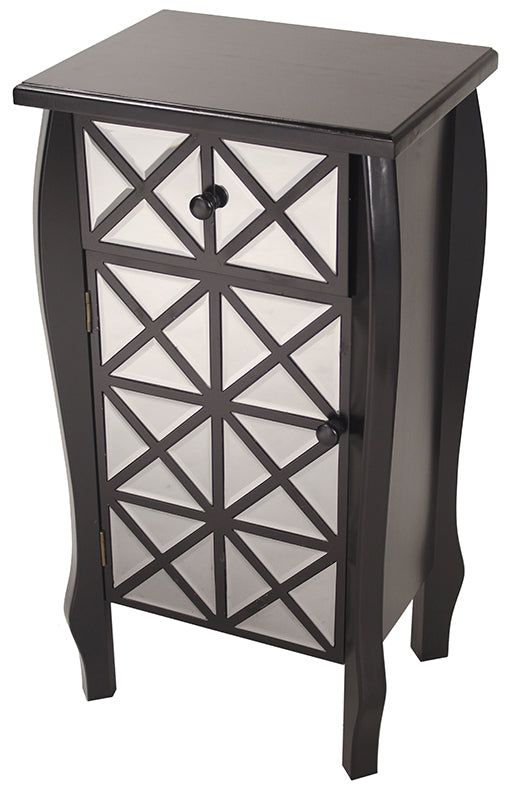 17.3" X 13" X 32.7" Black MDF Wood Mirrored Glass Accent Cabinet with Mirrored Drawer and Door