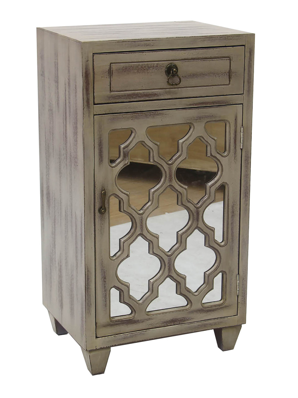 18" X 13" X 30" Taupe Wash MDF Wood Mirrored Glass Accent Cabinet with a Door and Mirror Inserts