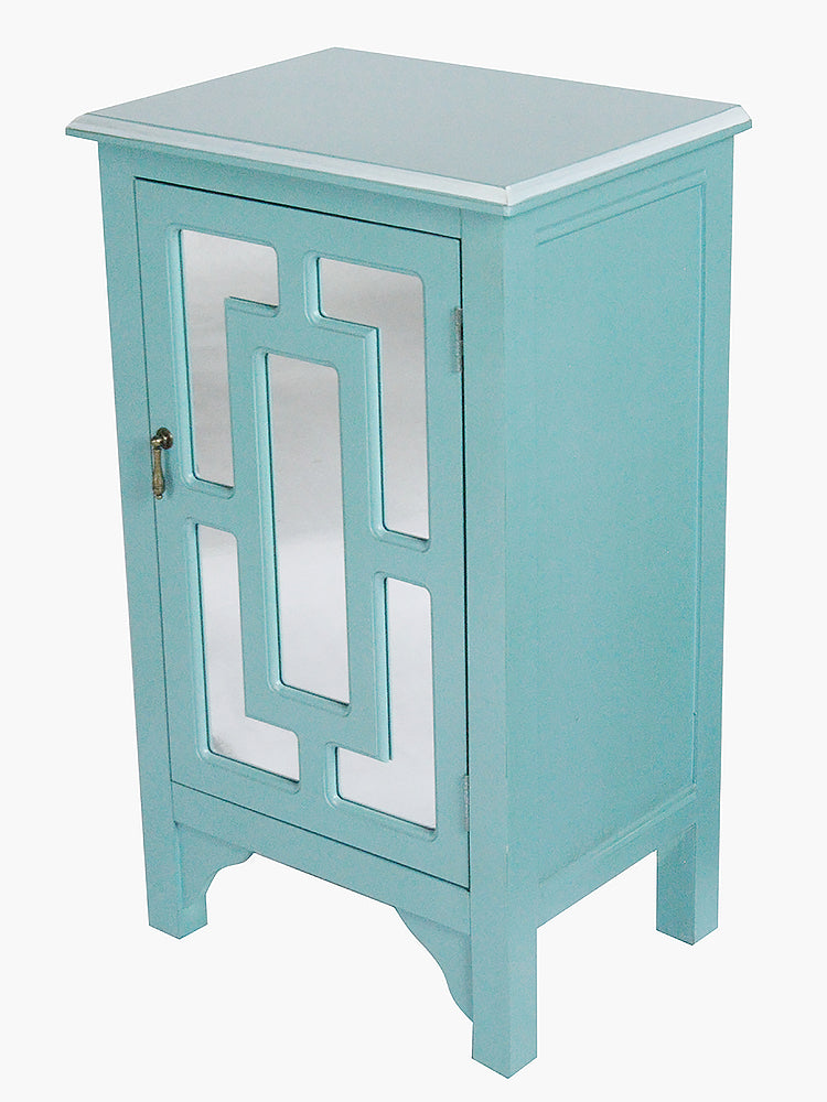 18" X 13" X 30" Turquoise MDF Wood Mirrored Glass Accent Cabinet with a Door and Mirror Inserts