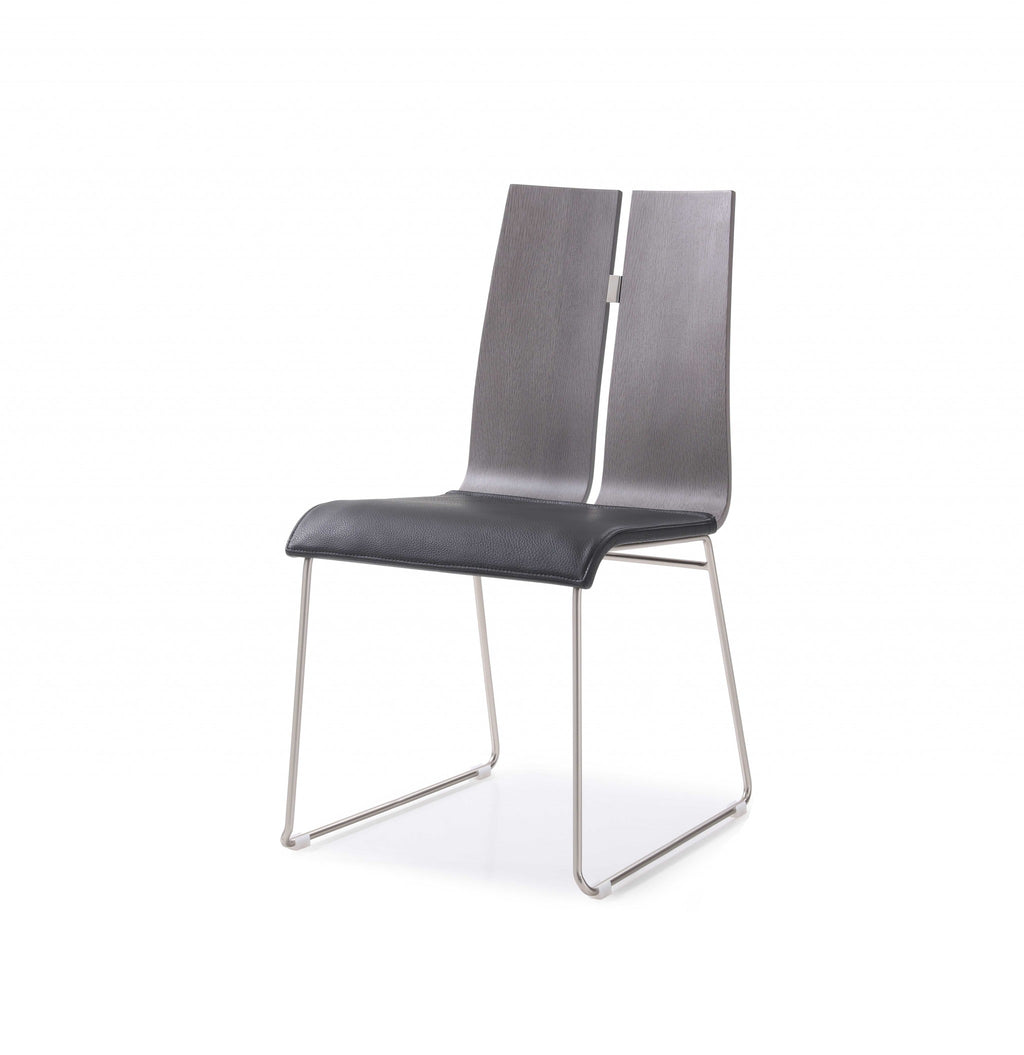 Natural Walnut and Black Faux Leather Metal Dining Chair