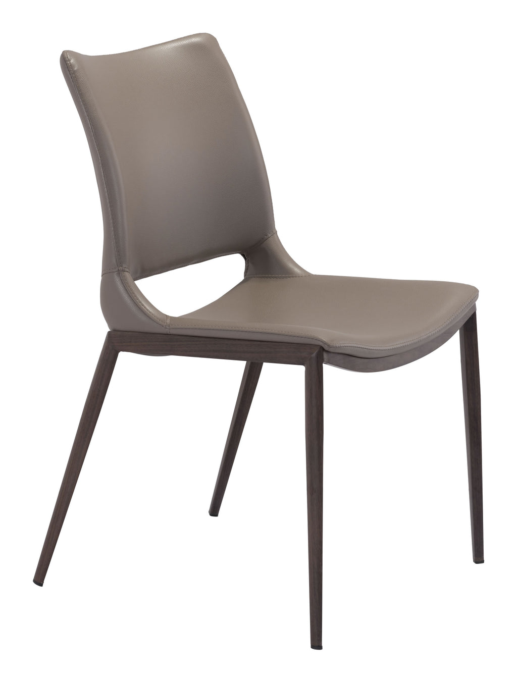 21.3" x 22.2" x 35" Gray & Walnut, Leatherette, Brushed Stainless Steel, Dining Chair - Set of 2