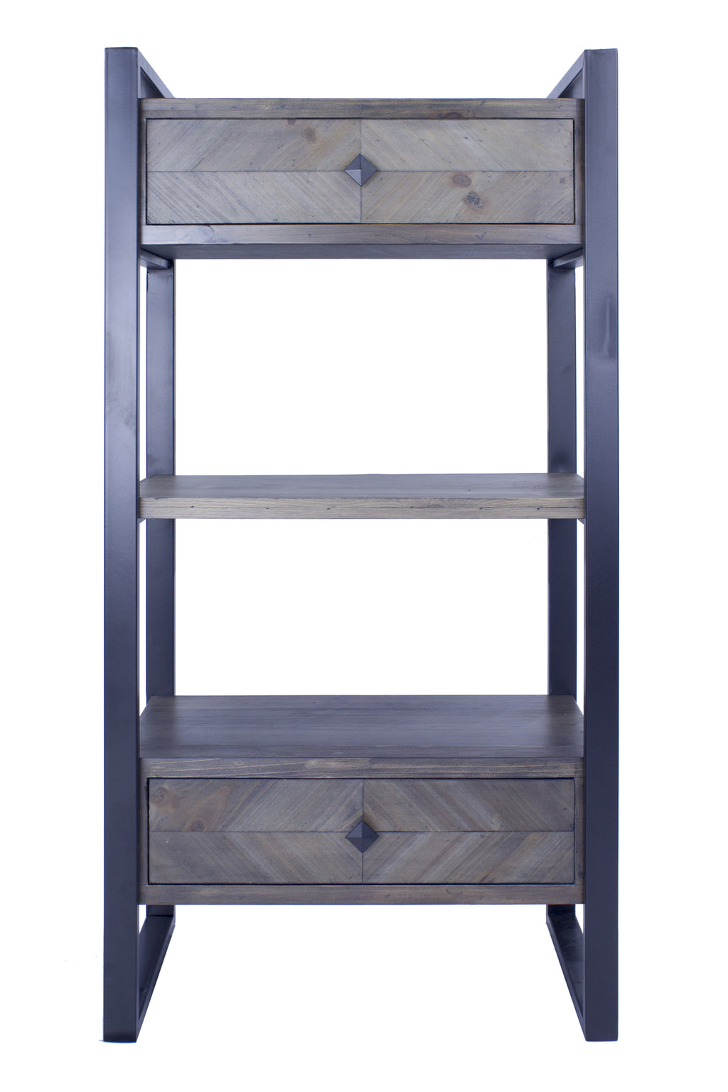 24" X 14.5" X 47.25" Brown Metal Wood MDF End Table with a Drawer and Shelves
