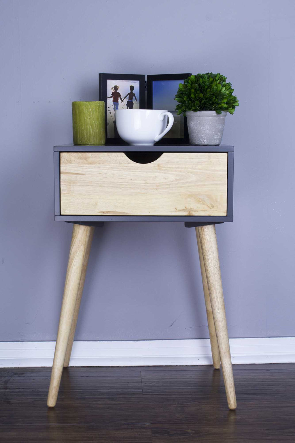 20" X 14.25" X 23.5" Gray Metal Wood MDF End Table with a Drawer