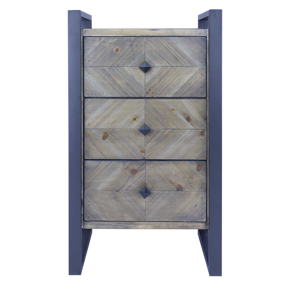 19.75" X 14.75" X 33.5" Gray Metal Wood MDF End Table with Drawers