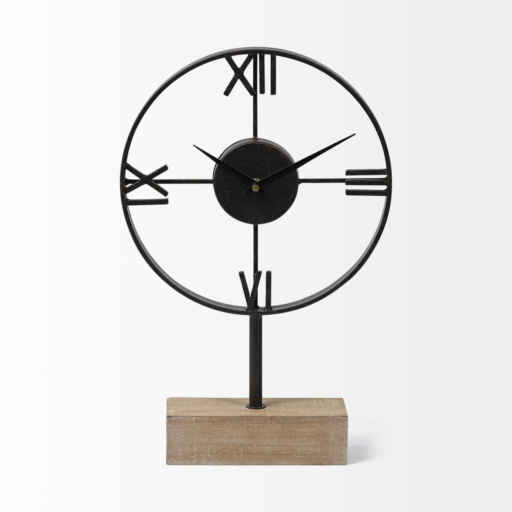 Black Metal/Wood Desk / Table Clock w/ Open Metal Frame