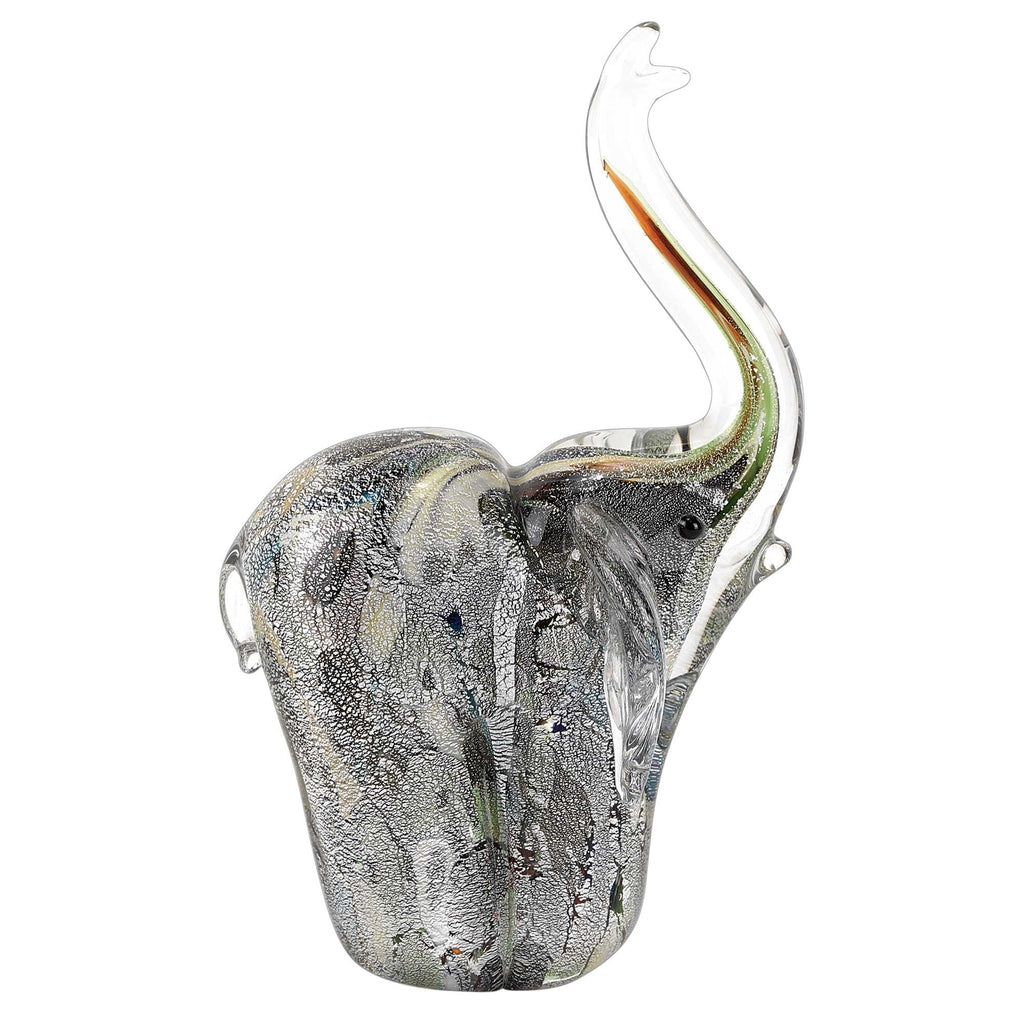 6" Mouth Blown Tall Silver Elephant Art Glass