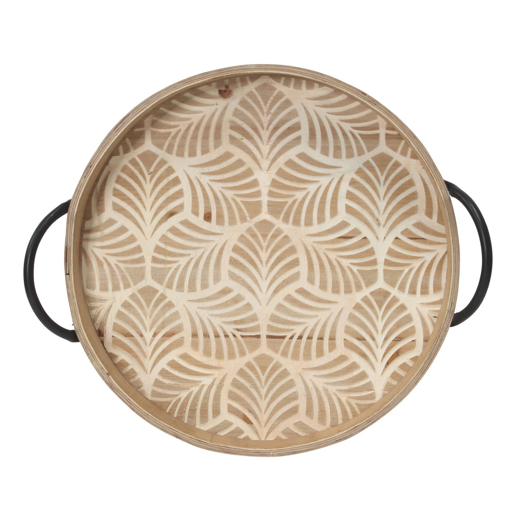 18" Oval Natural Ivory-Finished Wood with Curved Black Metal Handles
